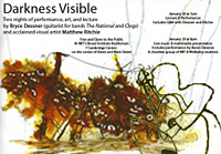 Over the next two nights, Bryce Dessner - guitarist for The National and Clogs - will perform Darkness Visible with visual artist Matthew Ritchie, Dessner's collaborator on the project.